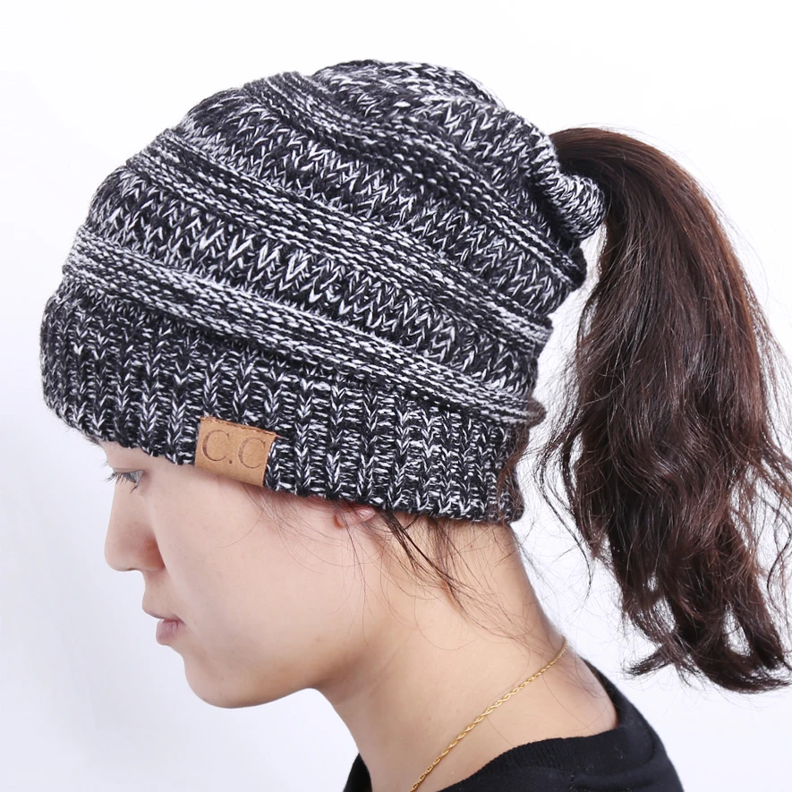 Good znacznv 2018 Newest Winter & Autumn Women Knit Acrylic Solid Color Girls Leisure Sport Hat Female and child Cap Ponytail Beanie offers